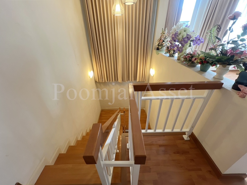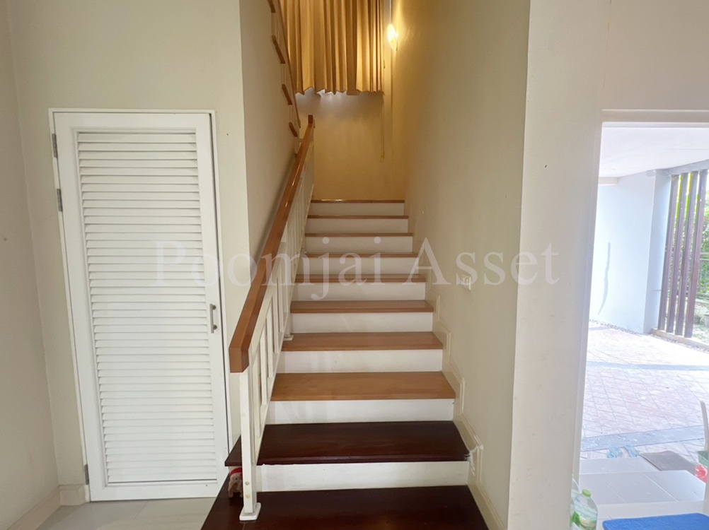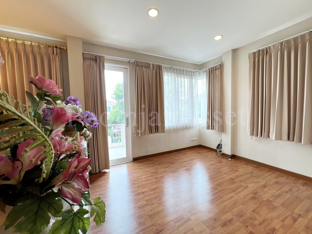 – บ้านมี 4 ห้องนอน 3 ห้องน้ำ แบ่งเป็นชั้นบน 3 ห้องนอน และ ชั้นล่าง 1 ห้องนอน